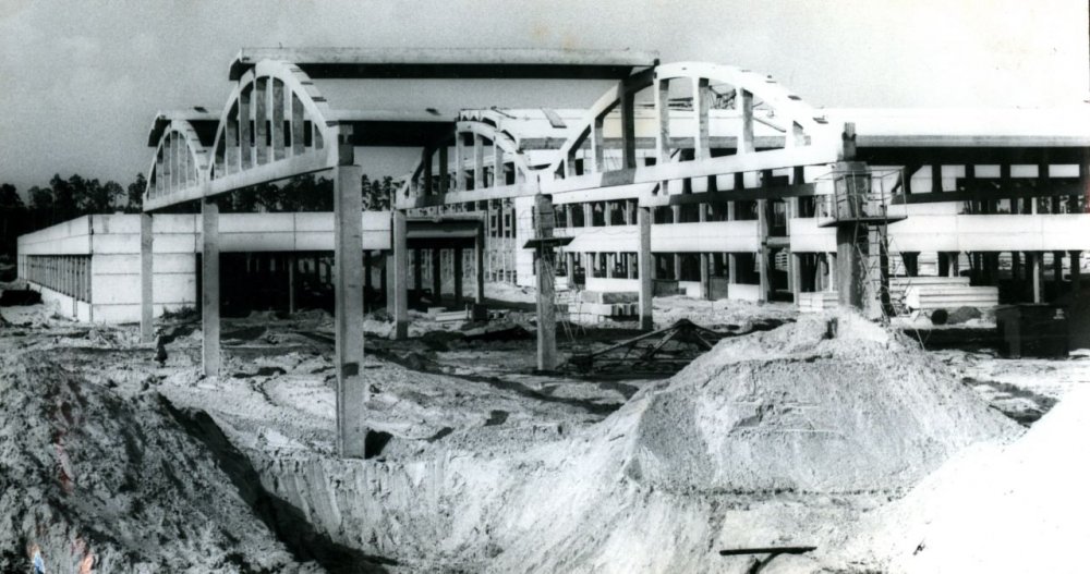 У 1976 годзе пачалося ўзвядзенне прадпрыемства, якое было аб'яўлена абласной камсамольска-маладзёжнай будоўляй. Фактычна завод паднімалі ўсёй краінай. Будаўнічыя матэрыялы, металаканструкцыі, тэхнічнае абсталяванне ішло сюды з розных месцаў Савецкага Саюза - Прыбалтыкі, Украіны, Казахстана. Вогнетрывалыя матэрыялы з Чэхаславакіі. З усіх куткоў краіны запрашаліся спецыялісты, на роднасных прадпрыемствах рыхтаваліся працоўныя кадры. Узвядзенне ДФЗ называлі "будоўляй дружбы".